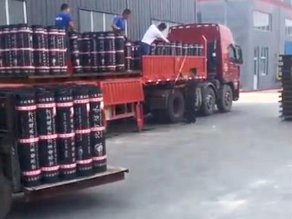 ????????進日,山東北方防水材料有限公司在廠外發出多卷SBS彈性體改性瀝青防水卷材...